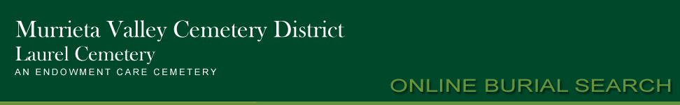 View Cemetery Map Cemetery Map View Niche Wall Niche Wall Every effort has been made to provide the most current and accurate information possible on this site. No warranties, expressed or implied, are provided for the data herein, or for its interpretation. |
